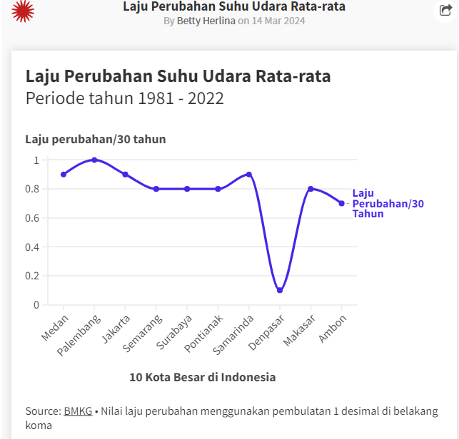El Nino adalah dampak dari perubahan iklim yang suhu terus naik. Suhu Bumi diperkirakan akan naik 1,5 derajat pada 2042. DI Indonesia sendiri laju perubahan suhu mengalami kenaikan signifikan dalam 30 tahun terakhir.