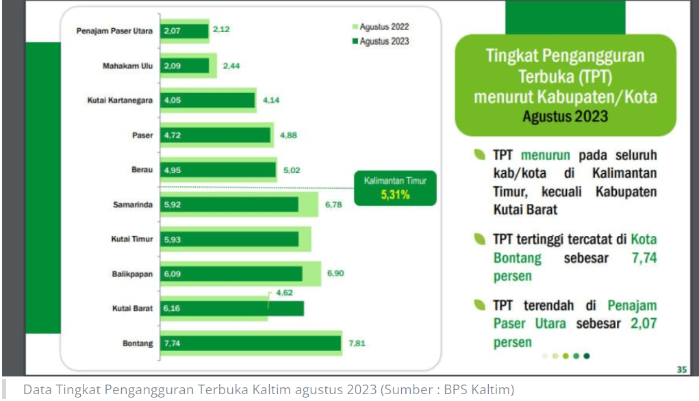 Jurnalismedata.id --- Pembangunan masif IKN memberi dampak positif pada angka pengangguran di Kalimantan Timur. Menurut data BPS, pada tahun 2023 hampir semua Kabupaten/Kota di Kaltim mengalami penurunan angka pengangguran. Kecuali di Kutai Barat.