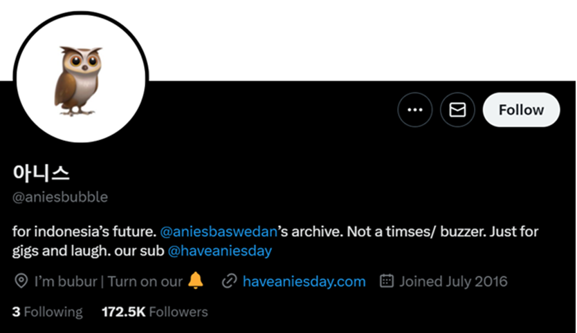 Cara lain adalah membuat akun dengan nada K-Pop. Seperti @aniesbubble, @olpproject. Keduanya cenderung ke capres Anies Baswedan. Sementara cara-cara kreatif lain dilakukan @timpenguinnas yang mendukung capres Ganjar Pranowo.