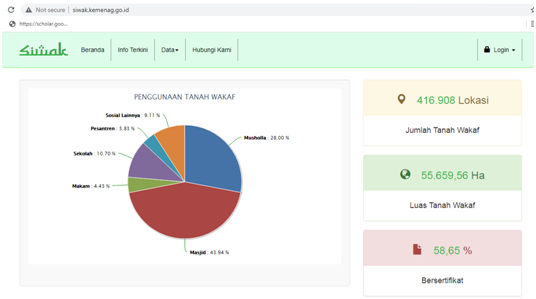 Dalam melakukan analisis data dilakukan berdasarkan sumber data terbuka mengenai informasi tanah wakaf yang tersedia di Sistem Informasi Tanah Wakaf (Siwak) Kementerian Agama Republik Indonesia. Aplikasi ini digunakan karena mencantumkan data tanah wakaf seluruh Indonesia.
