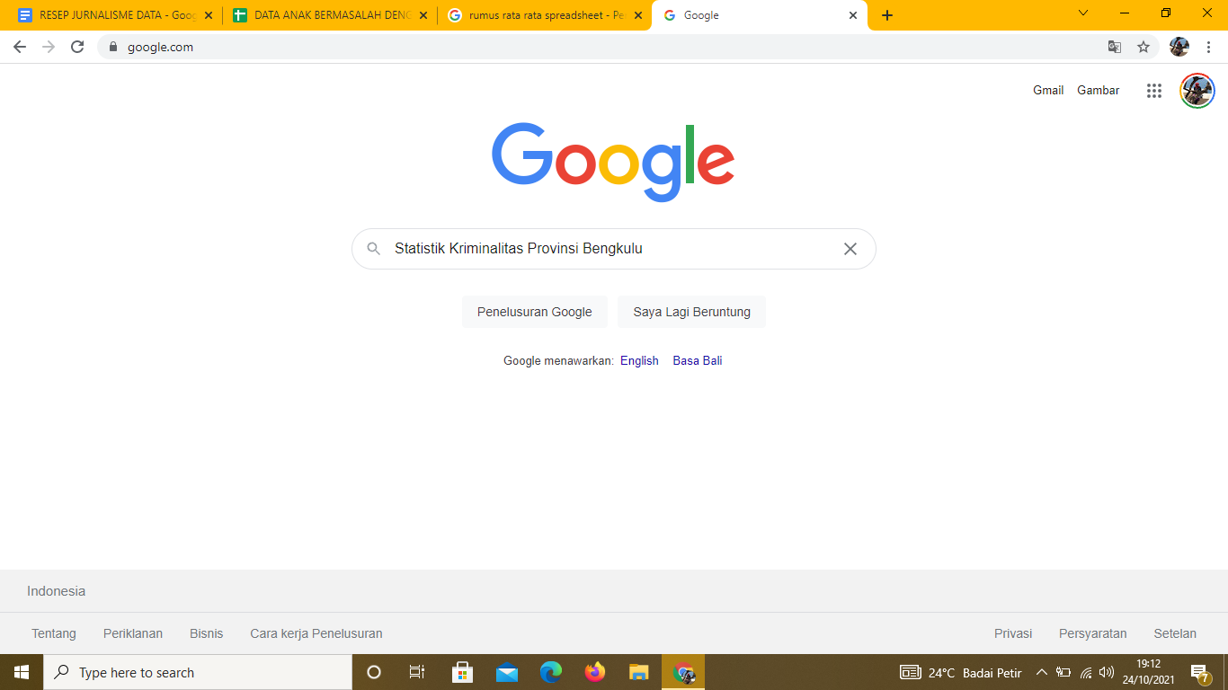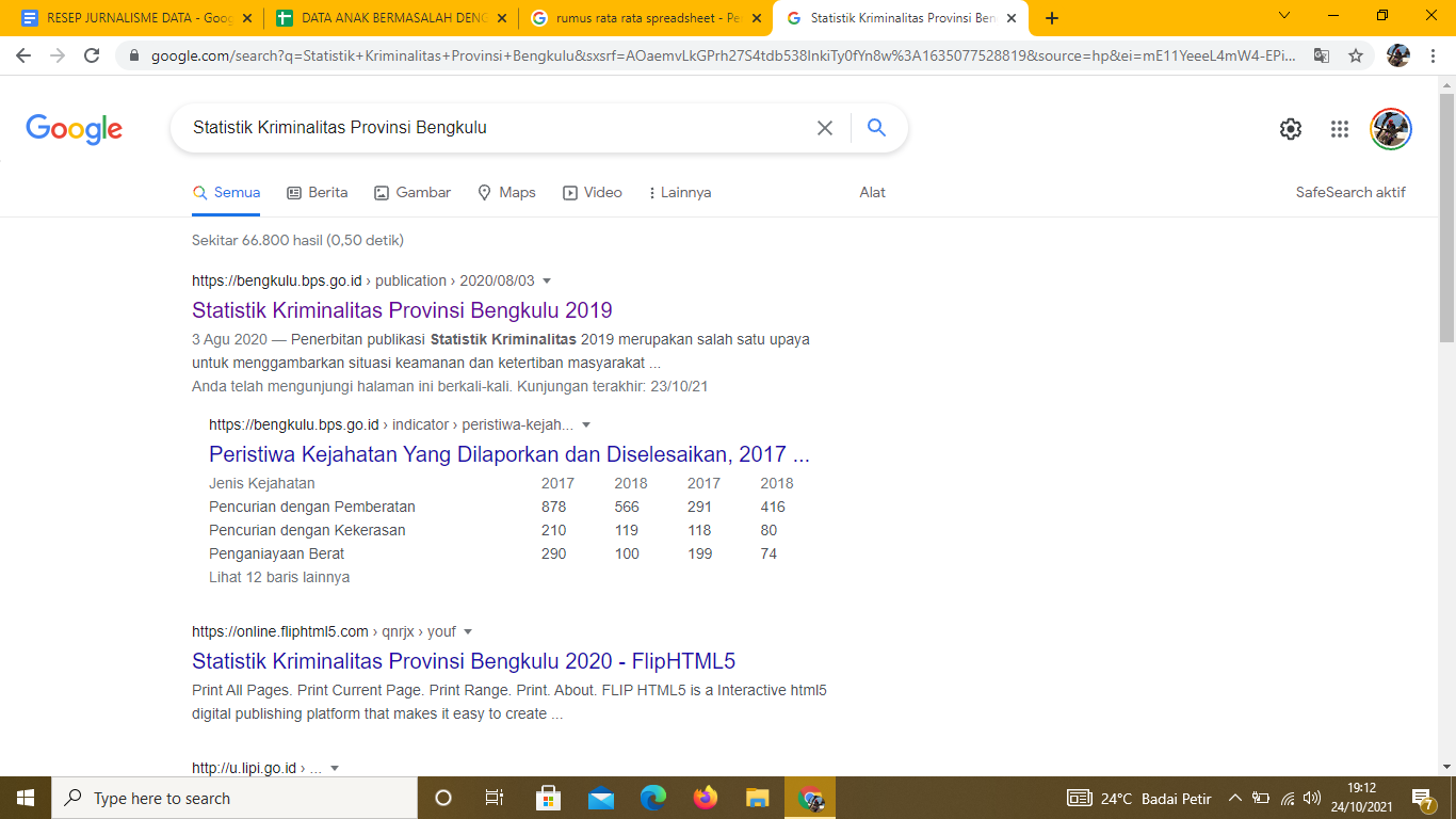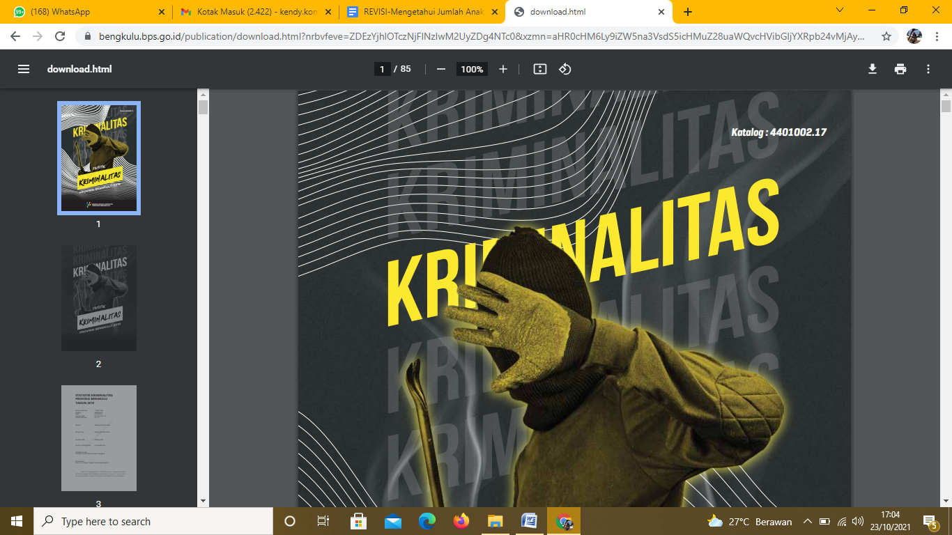 Untuk mendapatkan jumlah anak bermasalah dengan hukum bisa didapat melalui situs BPS Provinsi Bengkulu saya melakukan pencarian melalui Google dengan kata kunci Statisik Kriminalitas Provinsi Bengkulu tangkapan layar sebagai berikut: