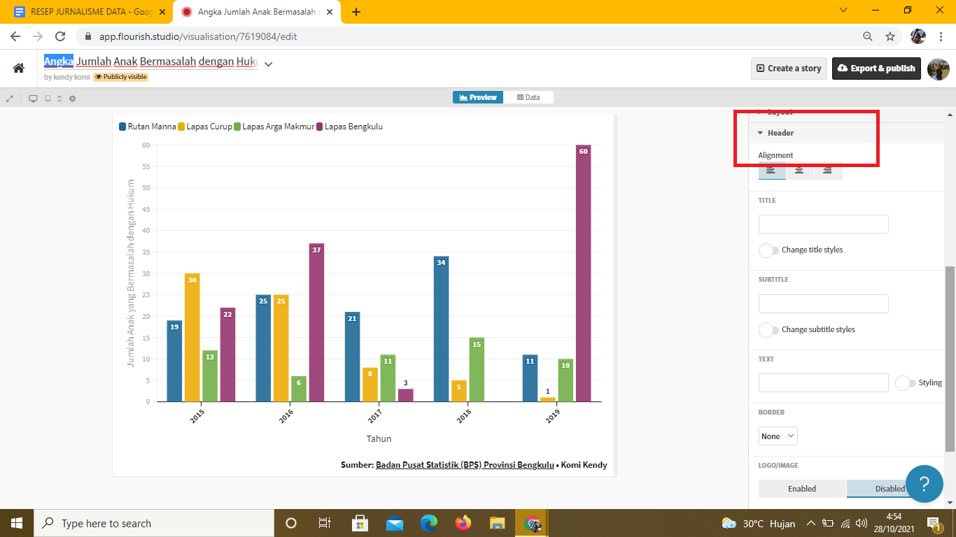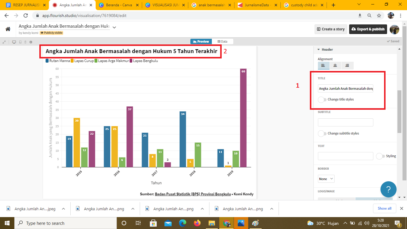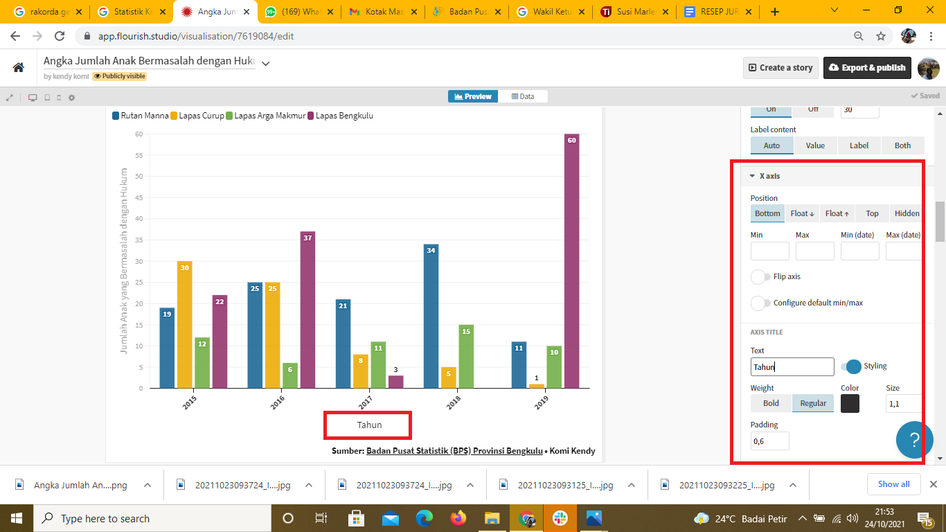 Mengetahui Jumlah Anak Bermasalah dengan Hukum di Bengkulu dan Memvisualisasikan dengan Flourish