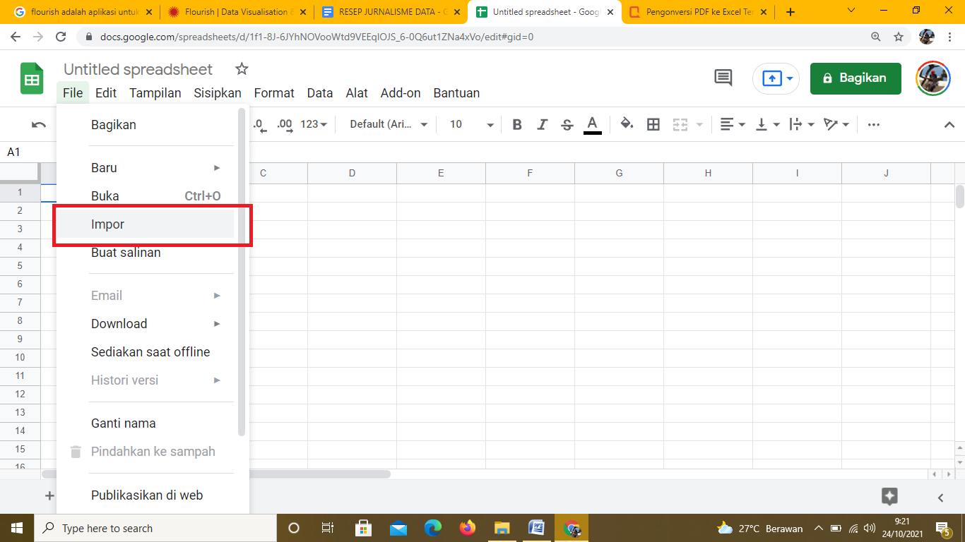 Caranya adalah dengan klik File, pilih Impor: