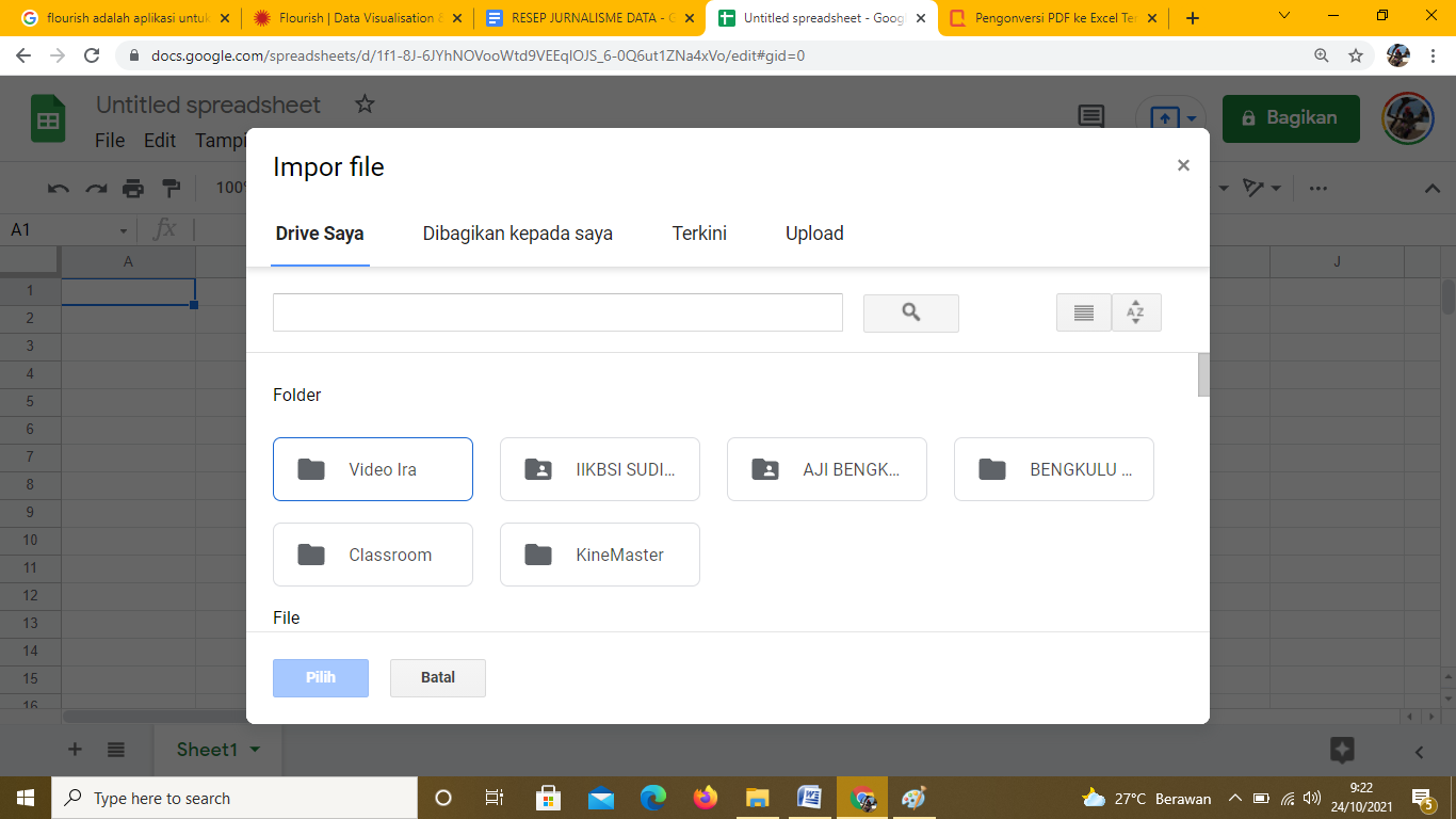 Klik Pilih file dari perangkat Anda pada kotak berwarna biru ditengah. Tampilan berikutnya akan muncul seperti ini: