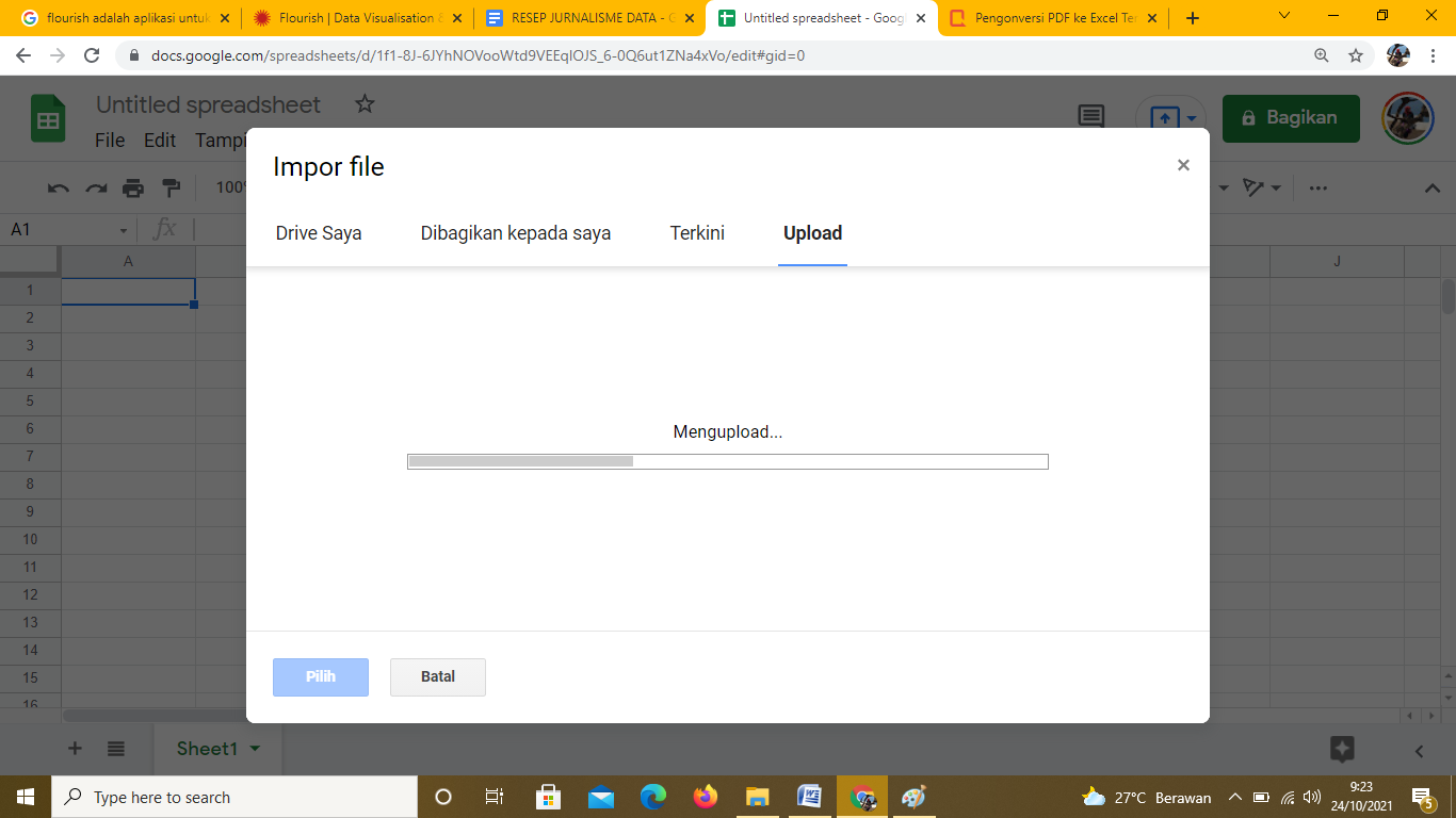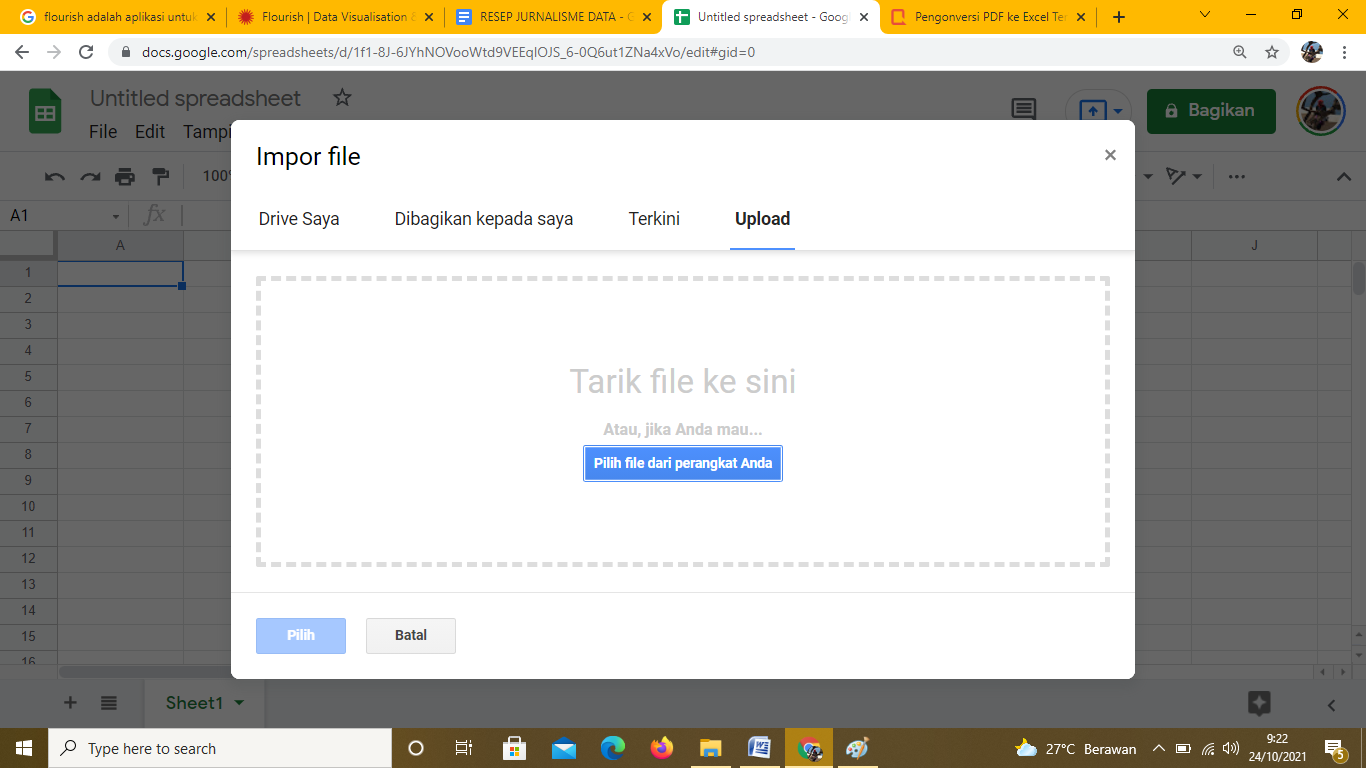 Gambar 9. Tampilan untuk mengimpor file excel ke spreadsheet
