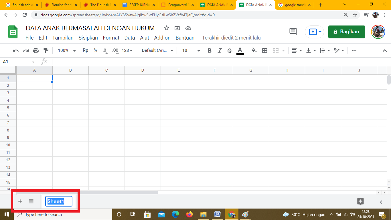 Gambar 22. Membuat sheet baru dengan menekan tanda tambah, lalu memberi nama