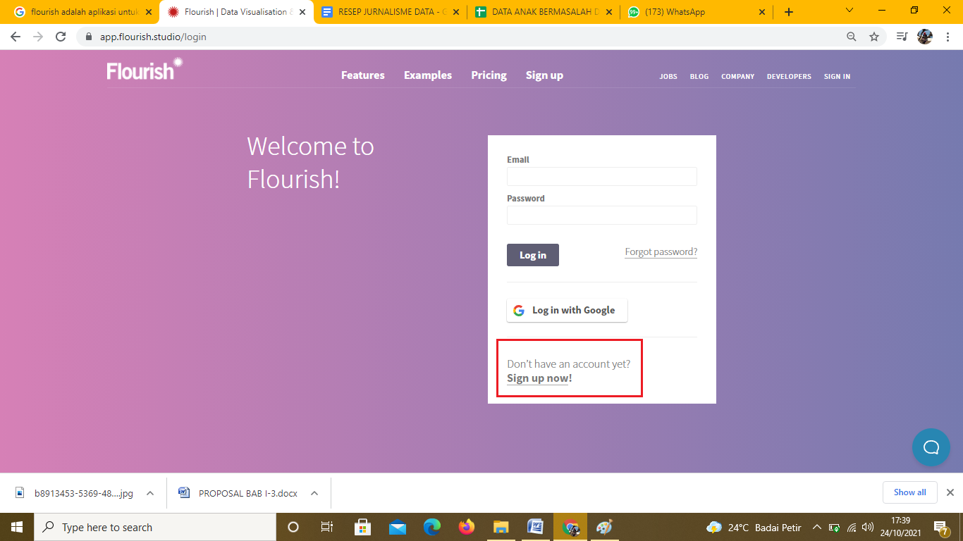 Gambar 42. Tampilan registrasi atau mendaftar ke Flourish
