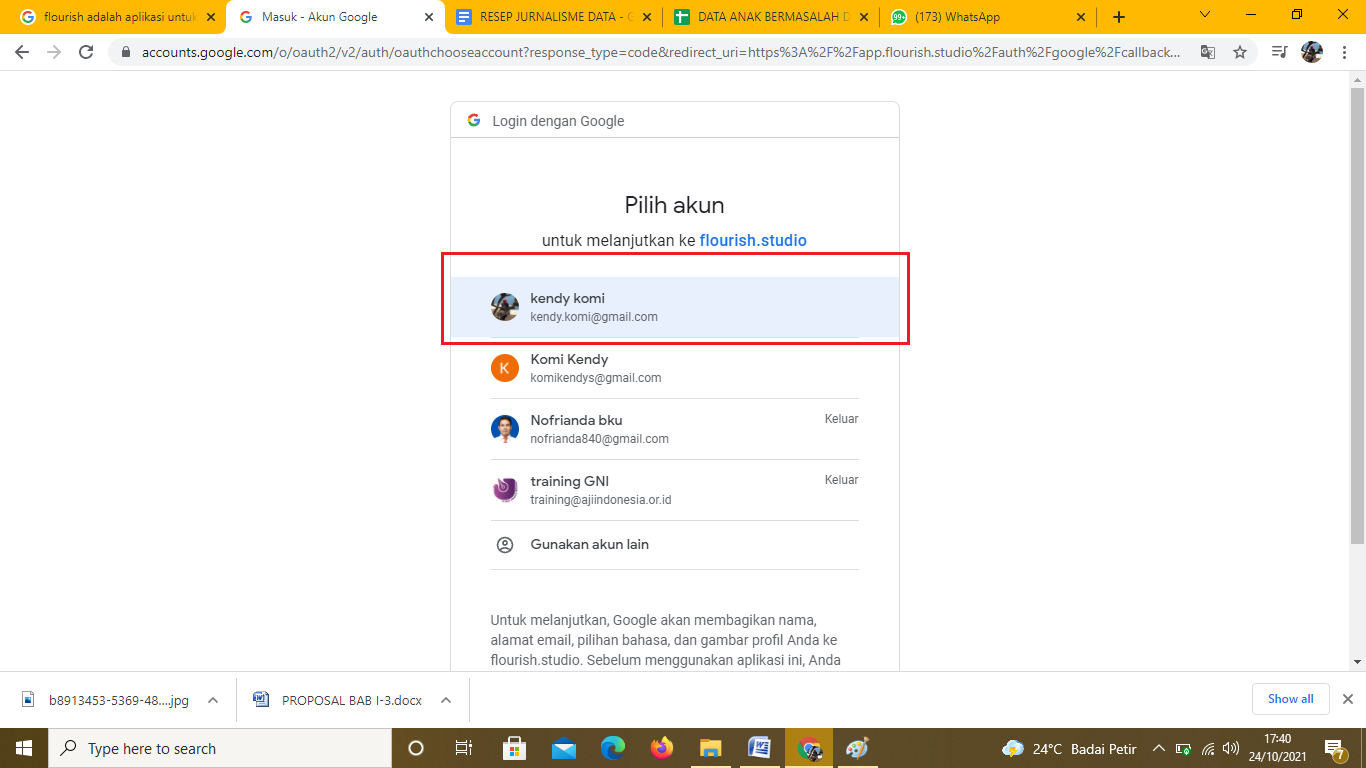 Gambar 44. Tampilan memilih email yang akan ditautkan