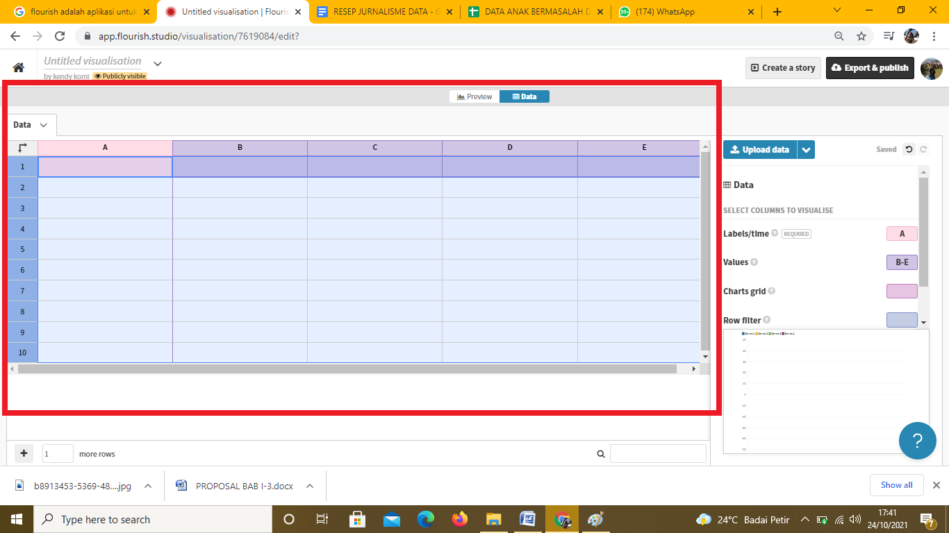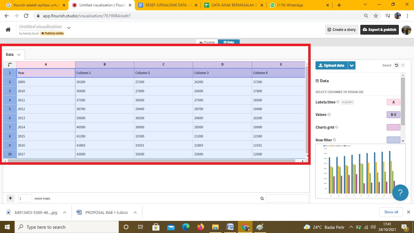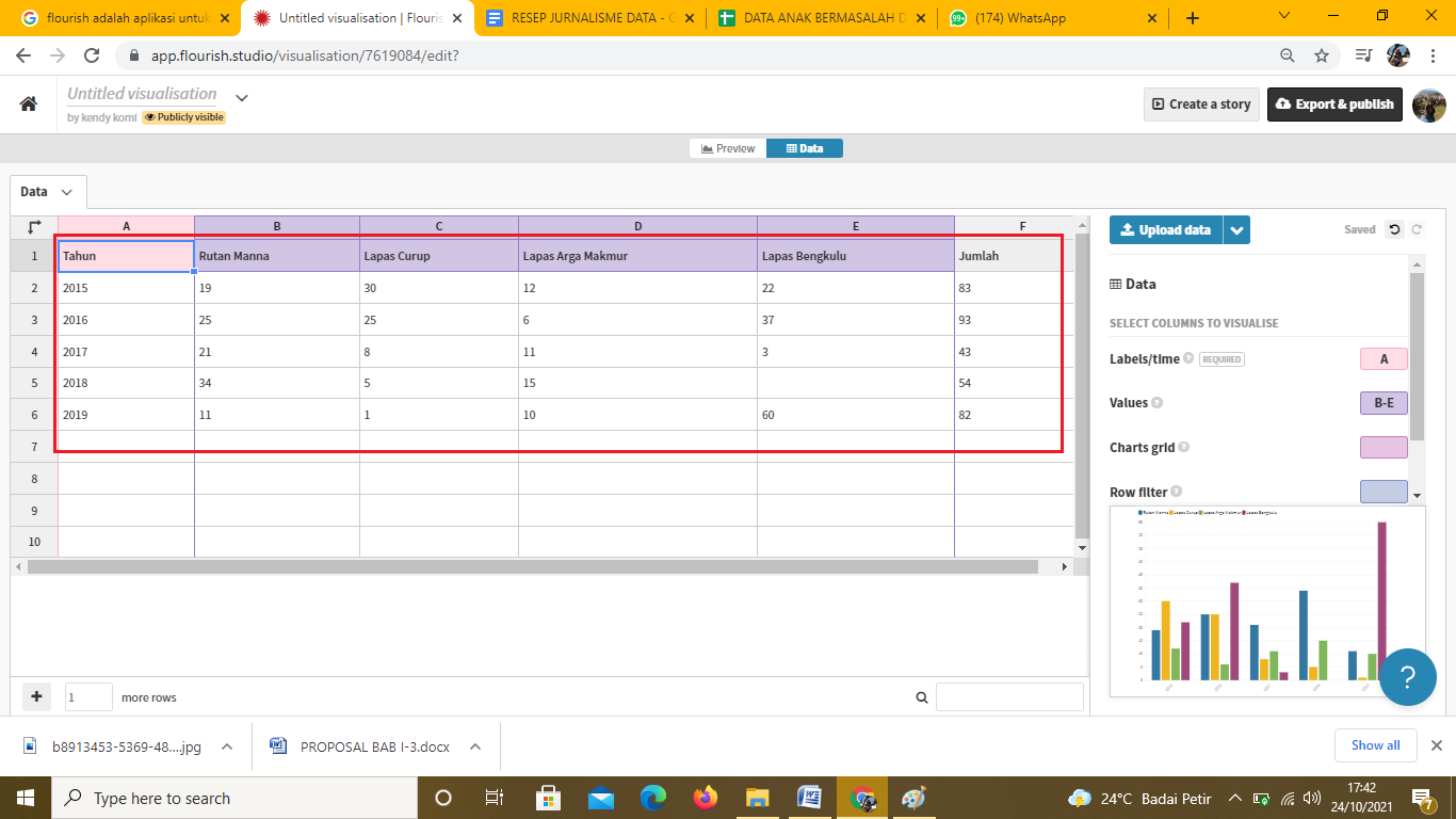 Gambar 49. Tampilan data yang akan dipergunakan ke Flourish