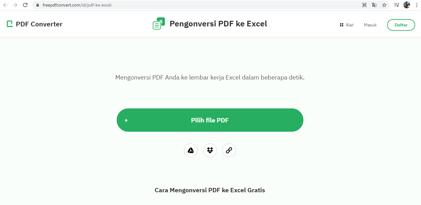 Gambar 5. Laman freepdfconvert.com yang bisa dipakai untuk mengonversi file pdf ke excel