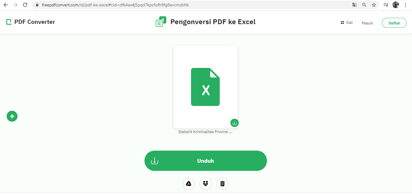 Gambar 7. Tampilan file pdf yang sudah berubah menjadi excel dan siap diunduh