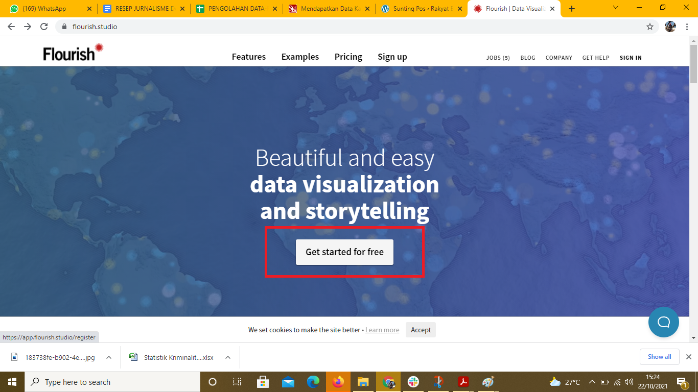 Proses registrasi diperlukan untuk menggunakan fitur-fitur menarik visualisasi data dan storytelling yang disediakan flourish.studio. Aplikasi Flourish terbilang user friendly atau mudah digunakan.