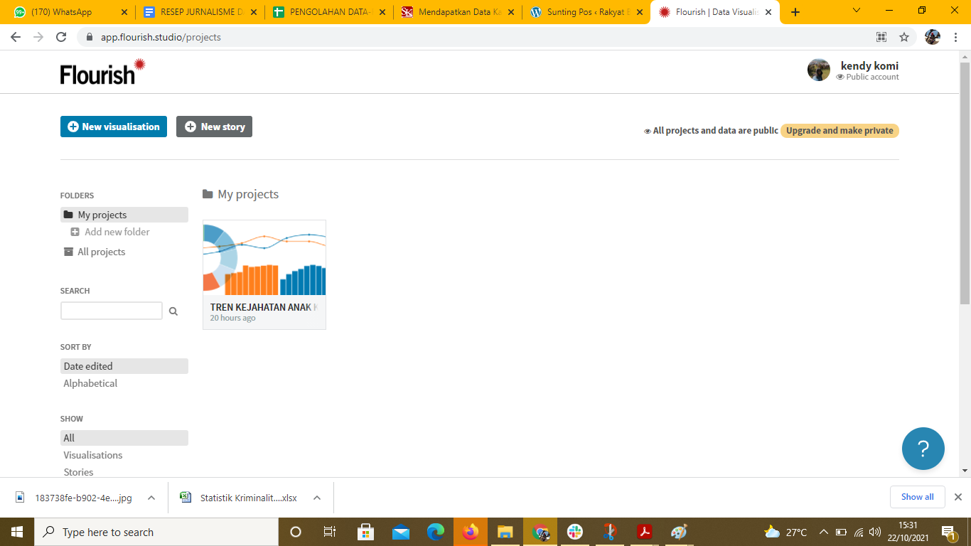Gambar 45. Tampilan dashboard pada Flourish yang berisi informasi akun dan proyek yang dikerjakan